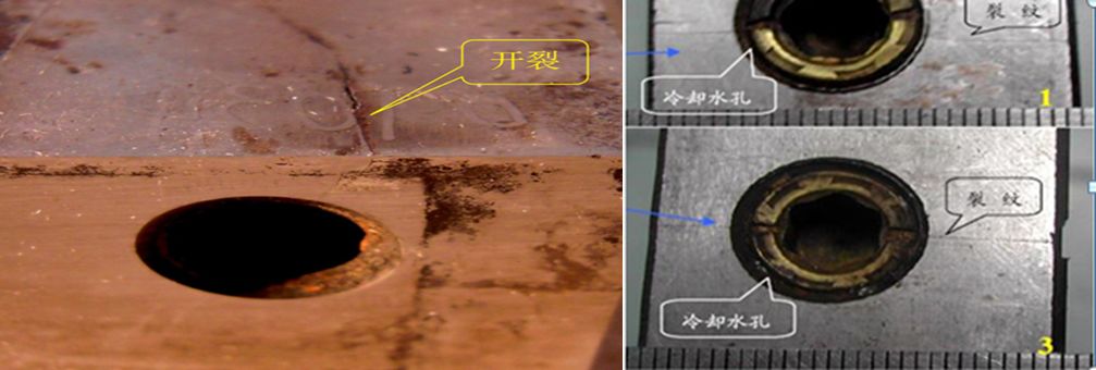 b.热处理淬火压力不足冷却速度不够造成模具韧性不足,当水孔处受氯离子腐蚀是容易引起水孔应力腐蚀开裂的原因之一。