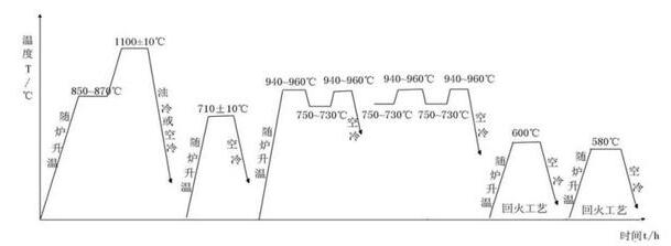 2)1090-1110℃,70-90s/每毫米钢材,油冷或空冷到室温