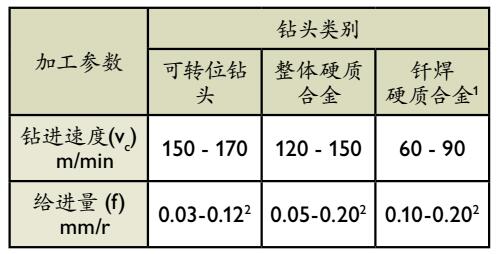 *适用于涂覆高速钢的钻头;不推荐使用未涂覆高速钢钻头