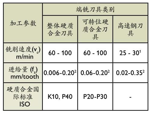 1 对于镀膜高速钢,Vc~45-50 m/min