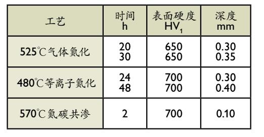 不同氮化处理时的硬度和氮化层深度如下所示
