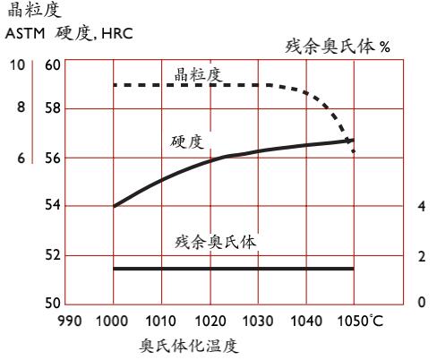 硬度、晶粒度、残余奥氏体和奥氏体化温度的关系