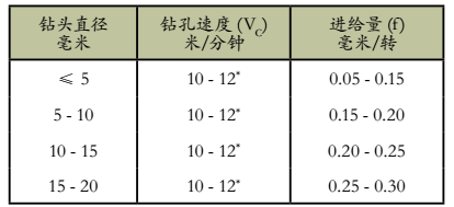 * 对于涂层高速钢钻头, VC = 16 - 18 米/分钟