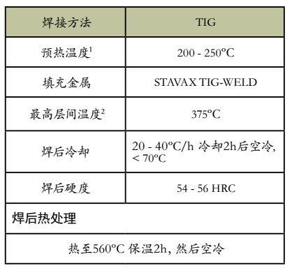 激光焊补,可采用STAVAX LASER WELD焊丝。