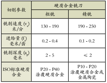 以下的加工参数可以作为参考指南,具体的参数要结合实际情况。