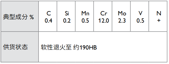 注意:在200℃-250℃回火可获得韧性、硬度及耐腐蚀性的最佳组合。然而,对于复杂的模具设计,建议采用高温回火(不低于525°C),以将残余应力和残余奥氏体降至最低。