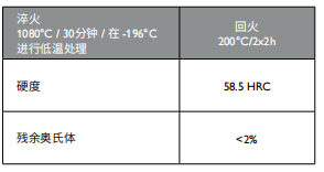 在1080°C淬火和530°C回火可获得达58HRC的硬度,仍然具有良好的延展性。