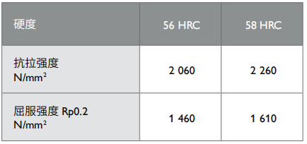 Tyrax ESR也可以在AISI420的常用硬度52HRC下使用,采用1020°C作为淬火温度并在250°C两次回火,每次回火保温2小时,残余奥氏体量<2%。