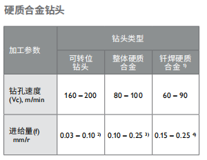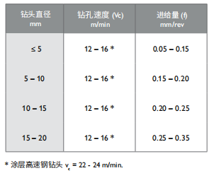 以下机加工参数仅作为加工指南,必须随实际加工条件做相应调整。