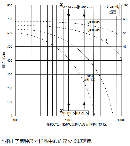 预热温度600–850℃。推荐的奥氏体化温度:1050-1080℃,保温30分钟。
