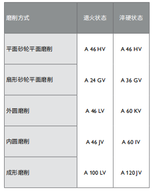 一般砂轮建议如下。更多详情可参见工模具钢的磨削手册。